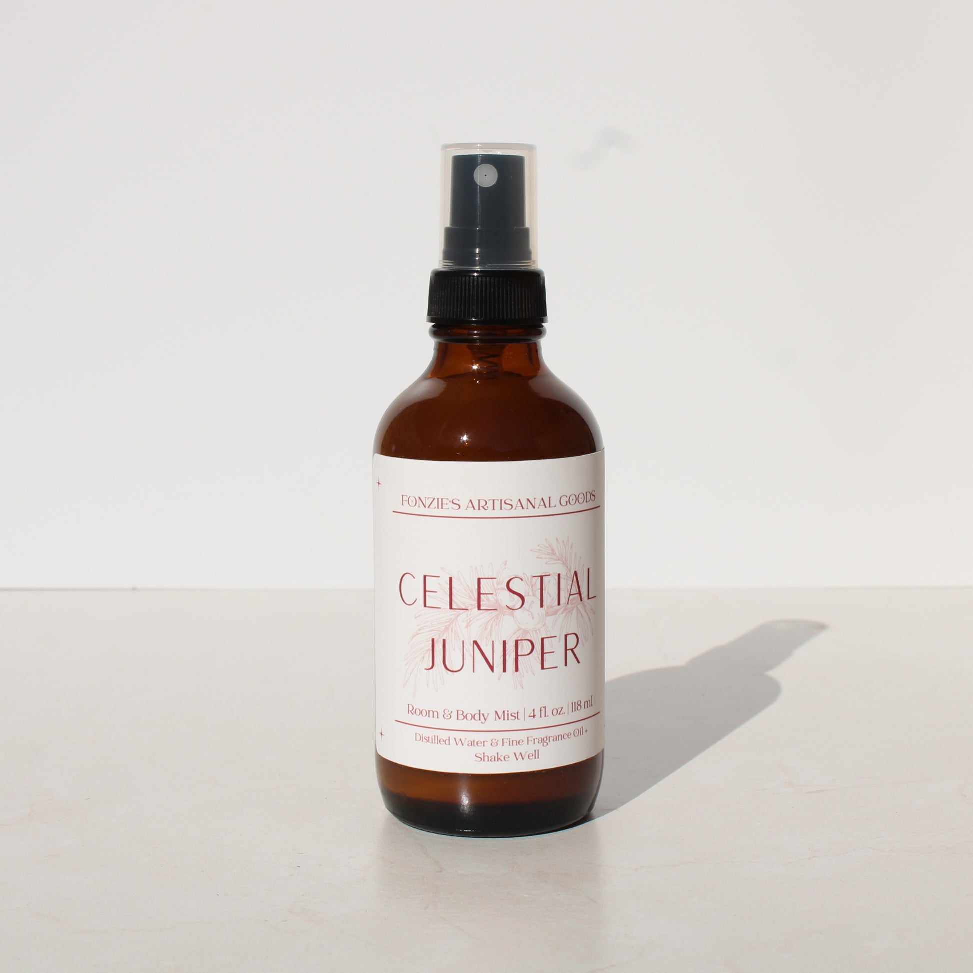 Our Celestial Juniper Mist is an enchanting blend of fresh evergreens and fruits. Cooling camphor, airy ozone, and a hint of citrus start off this complex winter scent. Middle notes of deep red berry balance the woody pine and juniper notes. The fresh evergreen notes are reinforced by eucalyptus, fir needle, and cedar leaf essential oils.